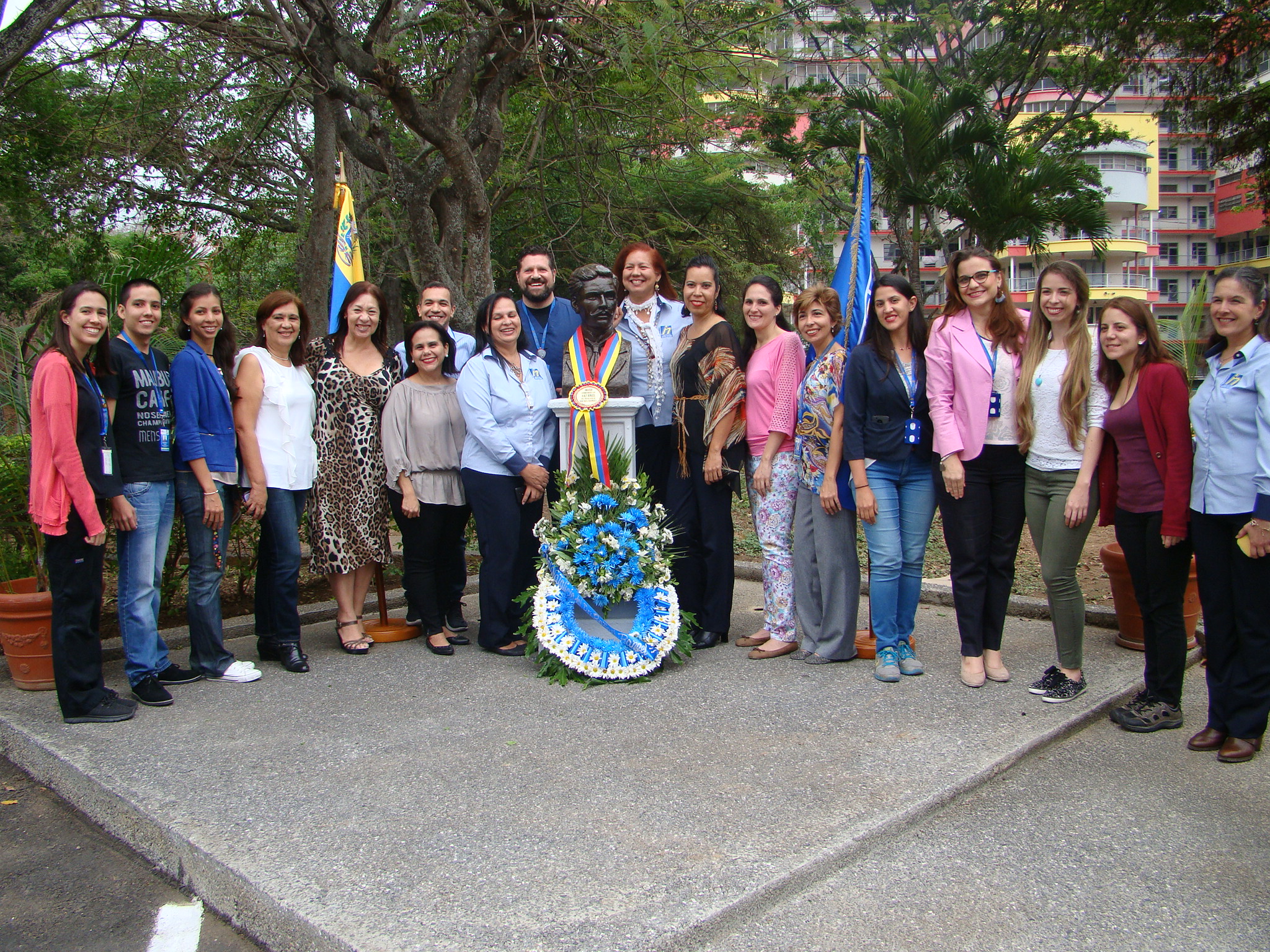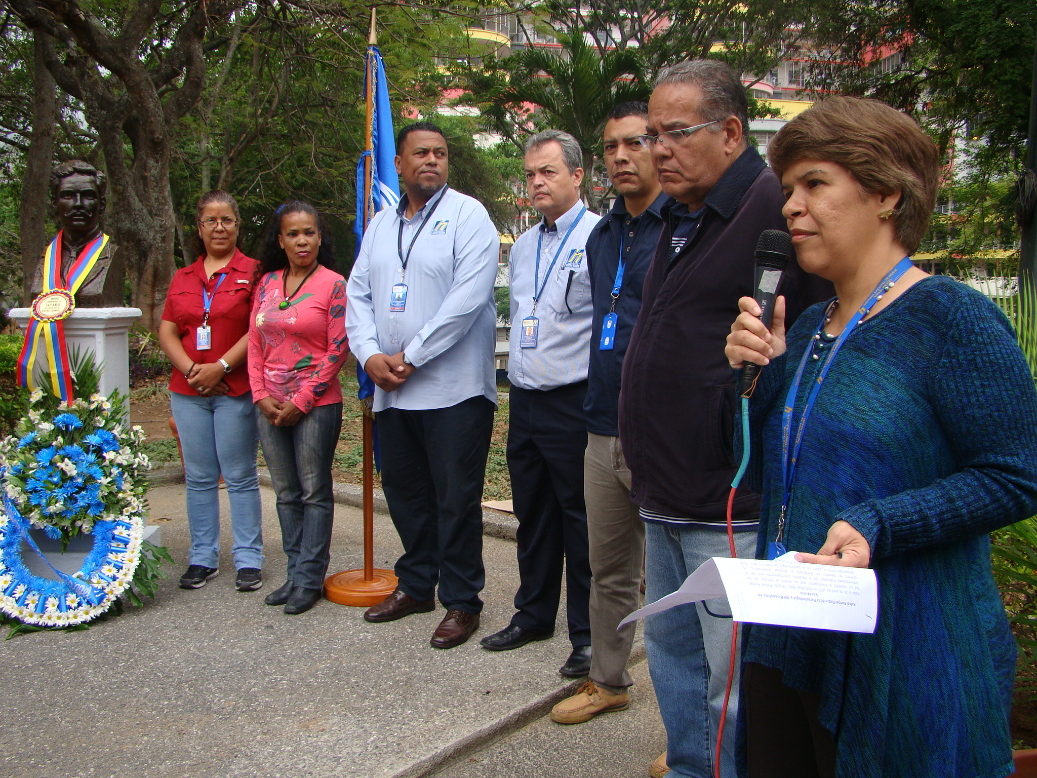 Culminada la homilía, las trabajadoras y trabajadores se trasladaron hasta el busto de Rafael Rangel, ubicado en las adyacencias de la Institución, donde se hizo una ofrenda floral y se impuso una banda a la escultura del padre de la parasitología venezolana.